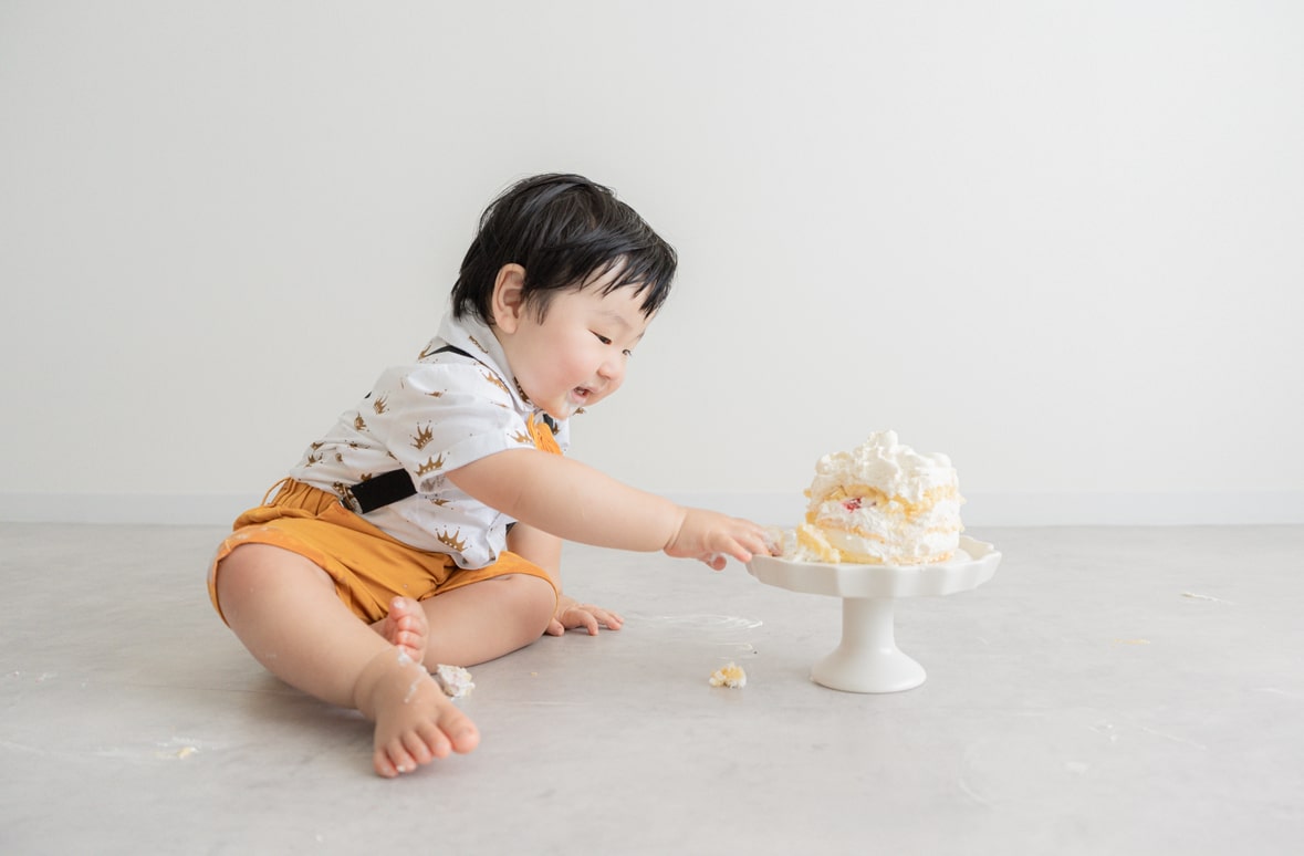 赤ちゃんに優しい素材のオーダーケーキ付き。ケーキ持ち込みは3,000円割引です。